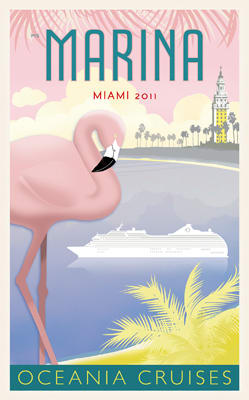 Tina White, regional sales director for Oceania Cruises, presented the award to Cruise Web President Frans Hansen on August 7, 2013 in front of the entire Cruise Web team. Tina praised our consultants and thanked The Cruise Web for a wonderful 2012 performance with a gorgeous plaque featuring five tiles, one for each of the cruise line’s ships (Marina retro poster pictured to the right). Oceania Cruises is celebrating its 10th anniversary this year, which is why this plaque included attractive retro renderings of all five of Oceania’s ships. Each plaque represents the debut of each ship into the fleet focusing on the port where the ship was christened.